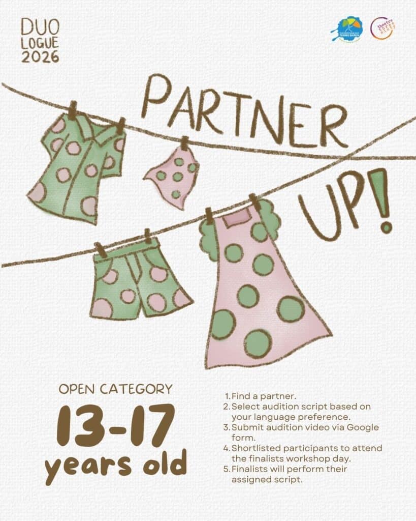 Calling all talented young actors aged 13–17. This is your moment to step into the spotlight and own the stage. Showcase your range, presence, and chemistry with a scene partner as you compete for cash prizes up to RM1,000 💰